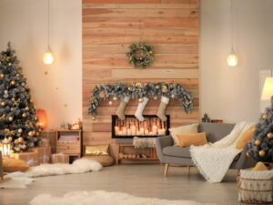 Combina cojines, mantas, cortinas y adornos siguiendo esa gama. Usa luces cálidas o guirnaldas LED para destacar el árbol o los muebles principales.